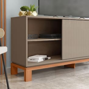 A Bancada Jace da Caemmun é a escolha perfeita para completar a sala de estar com um móvel moderno e funcional. Detalhe para a porta de correr com textura microrripada que se adapta a diversos estilos de decoração, enquanto os pés em cavalete com base elevada conferem um ar leve e contemporâneo. Ideal para televisores de até 45 polegadas se tornando a escolha perfeita para quem busca um móvel que segue as últimas tendências do mercado.