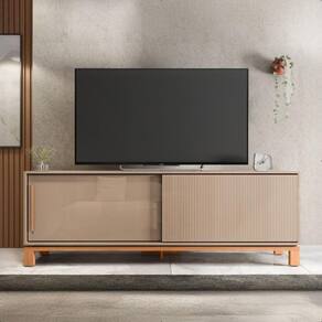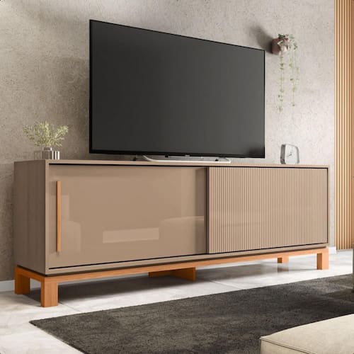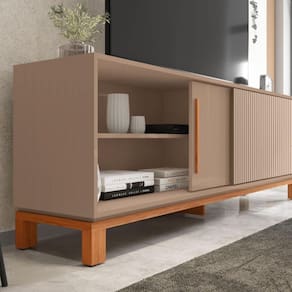 A Bancada Jace da Caemmun oferece um design moderno e funcional. Com espaço para s de até 65 polegadas, você poderá criar um espaço completo e elegante. Suas duas portas de correr, uma com puxador e outra com textura microrripada, proporcionam um visual único e prático. Produzida em MDP de alta qualidade, garante resistência e durabilidade, enquanto os pés cavalete com base elevada conferem um ar leve e contemporâneo.