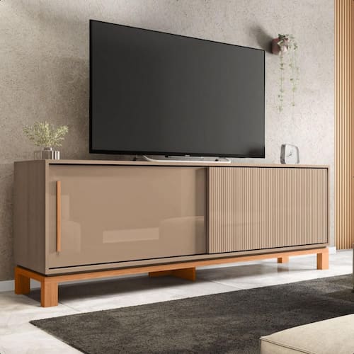 A Bancada Jace da Caemmun oferece um design moderno e funcional. Com espaço para TVs de até 65 polegadas, você poderá criar um espaço completo e elegante. Suas duas portas de correr, uma com puxador e outra com textura microrripada, proporcionam um visual único e prático. Produzida em MDP de alta qualidade, garante resistência e durabilidade, enquanto os pés cavalete com base elevada conferem um ar leve e contemporâneo.