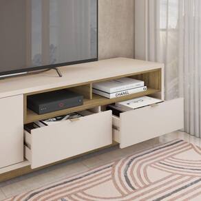 A Bancada Rack New Renda é robusta, ampla e deixará seu ambiente ainda mais elegante. Suporta Televisores até 75 polegadas além de 2 Portas e 2 Gavetas que permitem o armazenamento de diversos objetos devido ao seu amplo espaço interno. Feito em MDF, MDP e HDF possui grande resistência e durabilidade ao móvel.