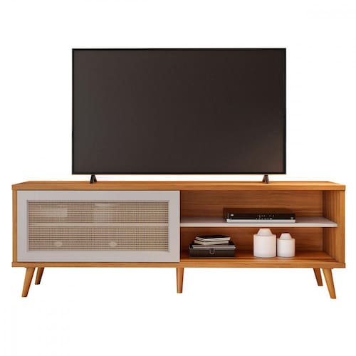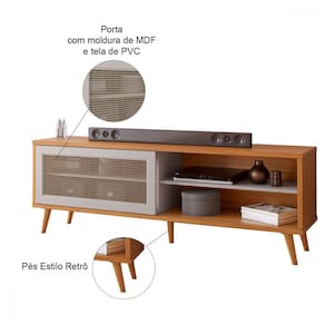 A bancada conta com duas prateleiras internas para você colocar seus objetos decorativos que complemente o seu ambiente e no tampo contém espaço para TV de até 60 polegadas.