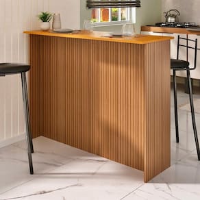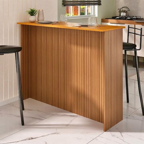 A Bancada Ripada 1,20m Freijó Ripado é a escolha perfeita para quem busca funcionalidade e estilo em sua cozinha. Com um design moderno e elegante, esta bancada é ideal para acomodar de 2 a 4 pessoas, proporcionando um espaço agradável para refeições e momentos em família.