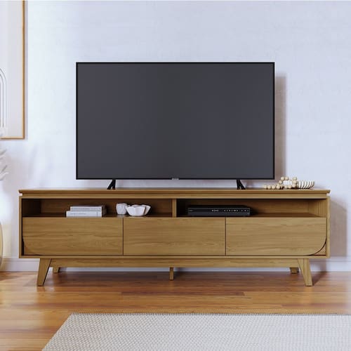 Características: Estrutura em MDP Pintura fosca Gavetas com corrediças Telescópicas Tampo chanfrado Pés Usinados Espaço para TV até 75 Polegadas.