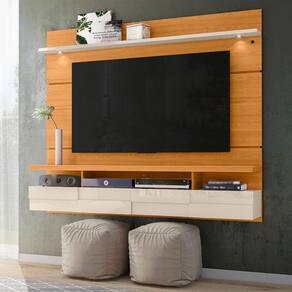Além de ser suspenso na parede lhe dando mais espaço, o Painel possui 1 Prateleira para seus aparelhos eletrônicos.