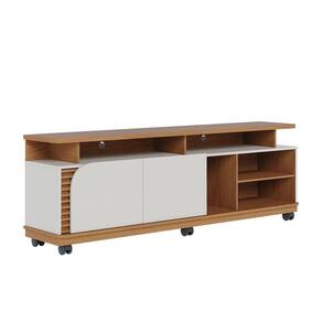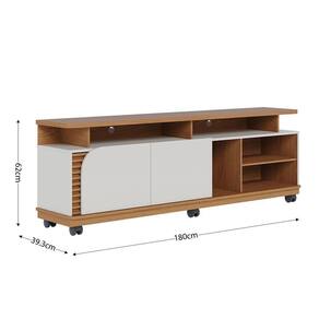 Bancada Tv De 75'' 2 Portas Com Rodízio Ewa 180cm C04 - D'rossi Amendoa E Verde Pistache O Rack Bancada Ewa é a combinação perfeita de elegância e funcionalidade, ideal para transformar sua sala de estar em um ambiente moderno e aconchegante. Seu design refinado se destaca pelos apliques ripados decorativos, que adicionam um toque de sofisticação, e pela porta de quina assimétrica usinada, que confere um visual exclusivo e contemporâneo. Com um tampo robusto de 25mm e detalhes suspensos, essa bancada oferece não apenas resistência, mas também um acabamento sofisticado. O nicho amplo permite organizar eletrônicos e itens decorativos com praticidade, enquanto as duas portas de giro proporcionam espaço extra para armazenar objetos de forma discreta. Projetado para suportar TVs de até 75 polegadas, o Rack Ewa também conta com 6 rodízios embutidos, facilitando a movimentação do móvel conforme a necessidade do ambiente. Se você busca um móvel funcional, sofisticado e versátil, o Rack Bancada Ewa é a escolha ideal para elevar o estilo da sua sala de estar! Dimensões do Produto: Altura: 62 cm Largura: 180 cm Profundidade: 39,3 cm Altura dos Pés/Rodízios: 9 cm Peso: 42 kg Características do Produto: Material da Estrutura: MDP 25mm, 15mm e 12mm, MDF 15mm e HDF 3mm Acabamento: UV Revestimento: Pintura Escala de Brilho: Fosco Peso Suportado: 30 kg distribuídos Possui Prateleiras: Sim Quantidade de Prateleiras: 1 Prateleira Possui Portas: Sim Quantidade de Portas: 2 Portas Tipo Porta: Convencional de Giro Material da Dobradiça: Metálica Revestimento da Borda: Fitas de borda em papel Possui Gavetas: Não possui Possui Nichos: Sim Quantidade de Nichos: 5 Nichos Possui Puxador: Não possui Possui Tampo: Sim, possui Possui Pés: Sim Quantidade de Pés: 6 Rodízios Material dos Pés: Plástico Possui Vidro: Não possui Recomendado para TV: Para TVs até 75 Material dos Pés: Plástico Diferenciais: Design moderno; Porta, tampo e base com cantos curvos; Detalhe ripado. Manual de Montagem: Sim Complexidade da Montagem: Baixo Montagem: Recomendamos que seja feita por um Garantia: 90 dias contra de fabricação Instruções de Limpeza: Utilizar um pano limpo e levemente úmido Quantidade de Volumes: 2 Caixas Medida das Embalagens: Caixa 1 : 11,4 cm x 35,6 cm x 55,3 cm e Caixa 2 : 186,8 cm x 39,6 cm x 9,4 cm : É feita somente até o térreo ou portaria. Não levamos em andares superiores. Confira sempre as medidas das embalagens.