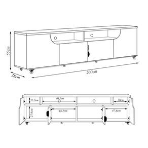 Largura: 200cm Altura: 55cm Profundidade: 38cm Altura dos pés: 6cm