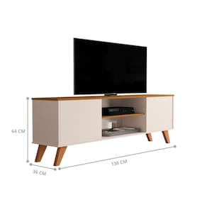 O Rack para TV é perfeito para você e sua sala de estar! Possui 4 pés de madeira, 2 porta, 1 prateleira e 2 nichos. Com suas repartições, ele possibilita uma melhor organização para os seu objetos.