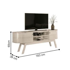 Esse Rack é perfeito para o seu ambiente, contém deltahes curvos no tampo e na base garantindo a elegância para a sua sala. Testado para TVs de 75 polegadas.
