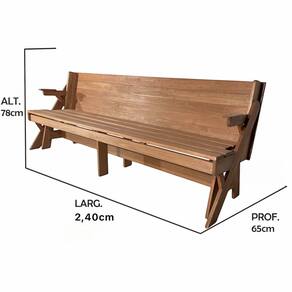 Apresentamos nosso Banco que vira Mesa em cera, um produto versátil e elegante. Feito de madeira de eucalipto vermelha, com estofamento em madeira maciça para durabilidade e conforto. Com dimensões de 240 cmx78 cmx30 cm, com 40kg, transforma-se facilmente em mesa, proporcionando praticidade e beleza para seus espaços. Surpreenda-se com qualidade e funcionalidade incomparáveis, podendo deixar em qualquer ambiente, sem se preocupar com a umidade.