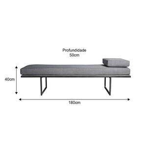 banco 3 lugares galli linho cinza e preto 180 cm