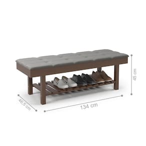 Além de banco, serve também como sapateira, acomodando em média até 10 calçados.