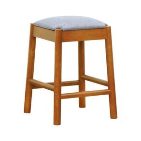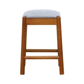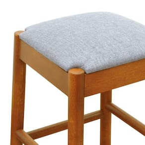 Banco Baixo Amber Madeira Maciça - Amêndoa Assento Estofado Linho Cinza Mescla Impermeável