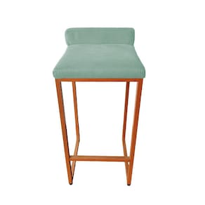 Banco Banqueta Grécia Pés de Metal Bronze Veludo - Estopar - Verde Claro