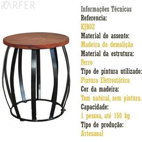 Banco Barril Rustico Artesanal Ferro e Madeira