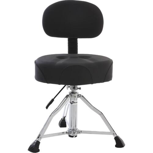 Modelo: comfort com encosto 23.5 Cor: preto Encosto: ajustável para melhor ergonomia Estrutura: aço resistente Altura: regulável Base: tripé com pés antiderrapantes Indicado para: bateria acústica e eletrônica Marca: Não Informado