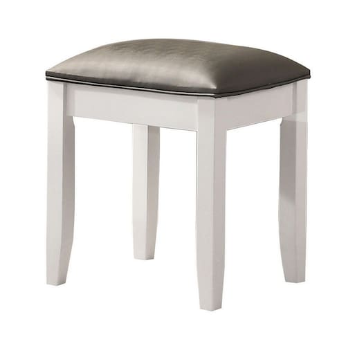 Acabamento branco para uma aparência clássica e calma e apoiado em pernas cônicas - Capacidade de peso de 300 libras e dimensões; 13,25 L × 16 L × 18 A, em polegadas