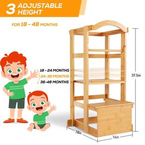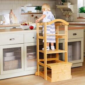 IPOW Banqueta de aprendizagem, torre infantil, altura ajustável, banco de bambu para cozinha, banheiro, balcão, ajudante, banco montessori, para aprendizagem, móveis, torre de cozimento em pé com - Estrutura sólida, segura e segura – Projetado e testado para exceder os padrões de segurança infantil. As grades de quatro lados fornecem suporte perfeito quando seu bebê estiver dentro, para que as crianças não caiam de lugares altos. Suporta com segurança 54 kg. - Material de bambu ecológico – o banco de cozinha infantil é feito de 100% bambu natural. Cada peça é cuidadosamente lixada e revestida com revestimento não tóxico que evita arranhões e marcas de arranhões. - Design em dois passos, fácil para as crianças entrarem e saírem – 2 degraus para facilitar a escalada ajudam as crianças a subir e sair de um banquinho de exploração para construir confiança e independência. - Design ajustável em altura – a plataforma ajustável de 3 níveis permite encontrar a altura certa para seus filhos! Este banquinho adequado para crianças de 1,5 a 5 anos de idade. Montagem necessária, dimensões montadas: 40 cm C x 45 cm L x 94 cm A. - Banco infantil multifuncional – Eleve seu bebê à altura do contrário. As crianças podem ajudar na cozinha: assar, misturar, preparar alimentos, limpar ou outras situações práticas. Vai deixar sua cozinha cheia de diversão! Você também pode colocá-lo na sala de lavagem para que as crianças possam escovar os dentes sozinhas.