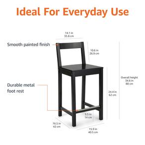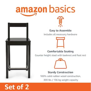 MadeiraAmazon Basics Banco de bar de madeira com encosto, preto, conjunto de 2