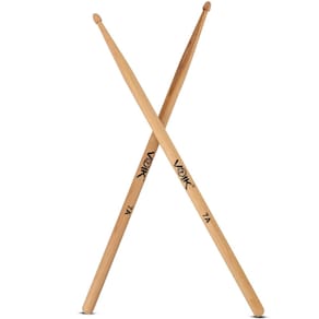 Baqueta: • Marca: Voik • Modelo: 7A • Madeira: Maple • Formato da Ponta: Oval • Diâmetro da baqueta: 1,8 mm • Diâmetro da ponta da baqueta: 0,8 mm • Comprimento: 39 cm • Peso do par: 64 g