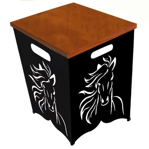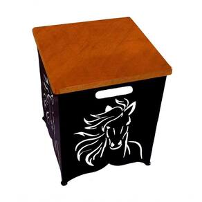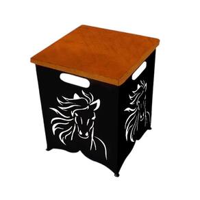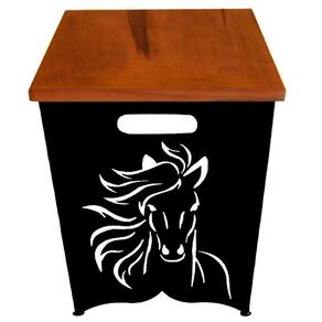 Encante-se com este Banco de Ferro com Tampo de Madeira e Cavalo em Corte a Laser!