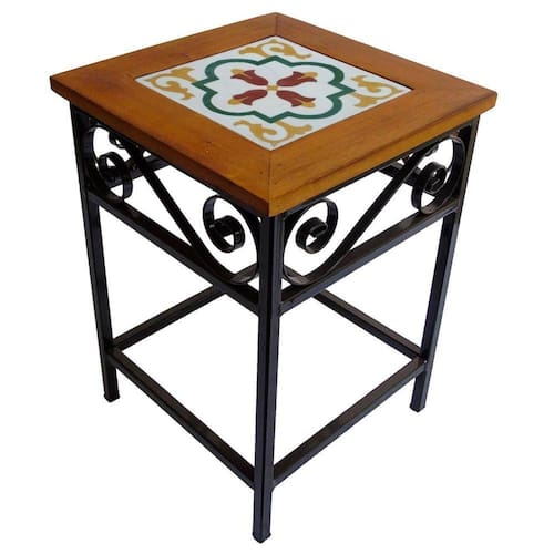 Banco De Ferro E Madeira Rústico Com Ladrilho Hidráulico Azulejo Ladrilho E1 - Marrom