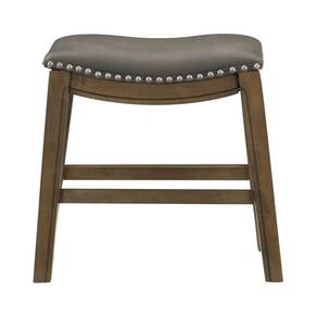 Banqueta de jantar - Couro sintético - Madeira maciça - Nailheads - Cinza e marrom -