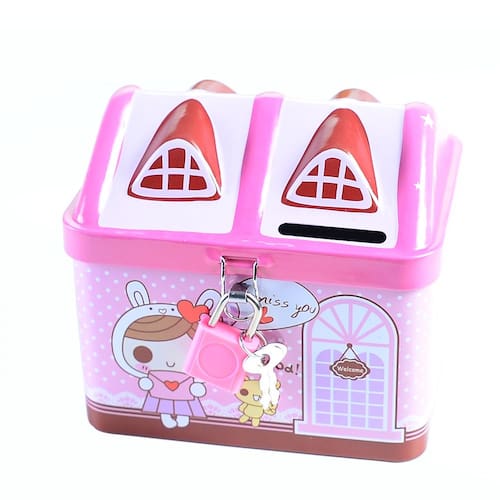 Tamanho: 12x9,5x10,5 cm Material: Metal 1. Design de casa exclusivo Feito adoravelmente no formato de uma casa rosa com janelas e teto de desenhos animados, este banco de moedas oferece diversão para economizar dinheiro e ilumina o quarto de qualquer criança. 2. Construção metálica durável Feito de material de folha de flandres resistente, este banco de poupança é resistente a quedas e desgaste, tornando-o seguro e duradouro para uso diário por crianças pequenas. 3. Secure with Lock & Key Possui um mini cadeado e sistema de chaves para manter as moedas seguras, incentivando bons hábitos de economia e dando às crianças um senso de responsabilidade. 4. Compacto e leve, medindo 12x9,5x10,5 cm, o tamanho é perfeito para mãos pequenas e fácil de transportar ou colocar em uma prateleira, mesa ou mesa de cabeceira. 5. Ideal ou recompensa Perfeito como presente de aniversário, prêmio de sala de aula ou lembrancinha de festa — ótimo para jardins de infância, recompensas escolares ou surpresas de férias em família.