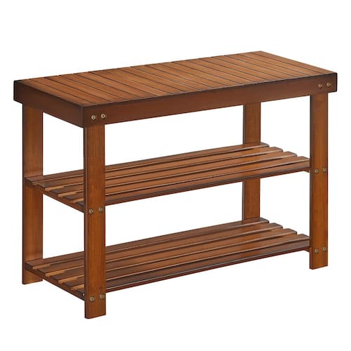 - [O que você recebe] Um banco de sapatos de bambu que permite que você se sente e troque os sapatos enquanto mantém seus calçados sob controle com 2 prateleiras embaixo