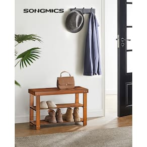 - [Chega de pilhas de sapatos] Duas prateleiras de bambu acomodam pelo menos 6 pares de sapatos e dão a você uma entrada limpa; a prateleira superior é perfeita para deixar sua bolsa de trabalho e bolsa no final do dia