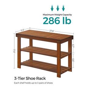 SONGMICS Sapateira, organizador de armazenamento de sapatos de bambu de 3 níveis, banco de entrada, comporta até 129 kg, 11,3 x 27,6 x 17,8 polegadas, para entrada de banheiro, quarto, cor nogueira