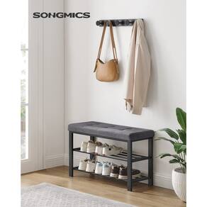 SONGMICS Banco de sapatos, banco de armazenamento, banco de entrada com almofada, prateleira de sapatos com assento, economia de espaço, estilo moderno, para sala de estar, quarto, corredor, cinza
