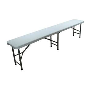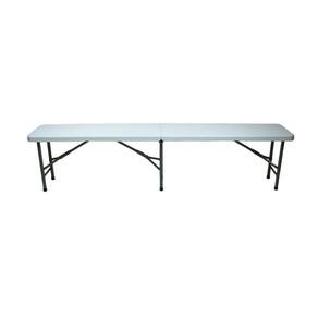 Material do tampo: Polietileno de alta densidadeMaterial das pernas: Aço esmaltadoDimensões aberto: 183 cm x 28 cm x 43 cmDimensões fechado: 93,5 cm x 28 cm x 8 cmCapacidade de carga: até 200 kgPeso: 7,2 kgCor: BrancaContém: 01 Banco Dobrável Branco
