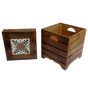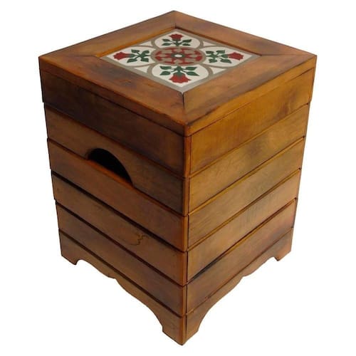 Banco Madeira Volpi Baú Com Ladrilho Hidráulico Azulejo Ladrilho B3 - Marrom