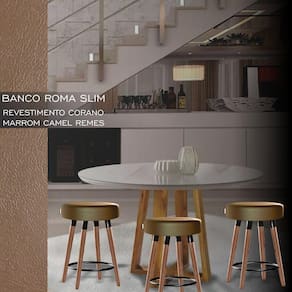 Banco Moderno Pé Palito Roma Slim Camel 50cm - Marrom