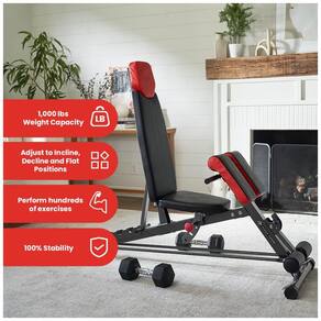 BANCO MULTIUSOS AJUSTÁVEL PARA EXERCÍCIOS MÚLTIPLOS Projetado para servir como um banco plano, inclinado ou declinado, você pode direcionar seus glúteos, coxas, isquiotibiais e abdominais, ou ajustar também para um treino completo da parte superior do corpo. CONSTRUÇÃO DE ALTA QUALIDADE DE GINÁSIO Feito de aço revestido a pó de alta qualidade, este banco recém reforçado lida facilmente com exercícios de peso corporal e exercícios com barra, halteres. 7 DIFERENTES POSIÇÕES AJUSTÁVEIS Ajusta se facilmente de banco plano a banco inclinado. Super simples de deslizar para qualquer exercício. Também possui 8 configurações de Hip Pad e 3 ajustes de assento para que você obtenha um ajuste perfeito Marca: Não Informado