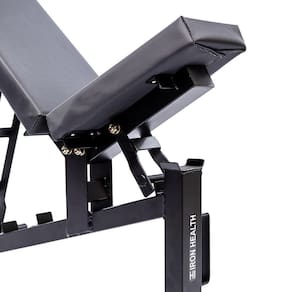 Banco Musculação Regulável Com Rodinhas Inclina e Declina O Banco Fitness Regulável Com Rodinhas Declinável e Inclinável tem a função acessória para execução de exercícios físicos variados. Revestido com espuma D33 e 3cm de espessura, o banco possui 6 estágios de regulagem. Características:Comprimento Total: 120 cmLargura Estofado: 25 cmAltura 43 cm. Capacidade de carga: 300kg Marca: Iron Health Equipamentos