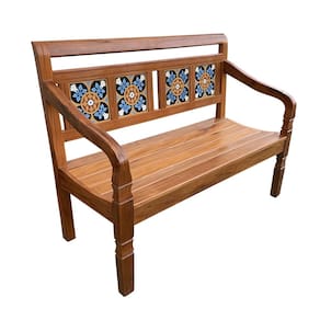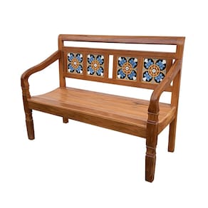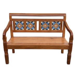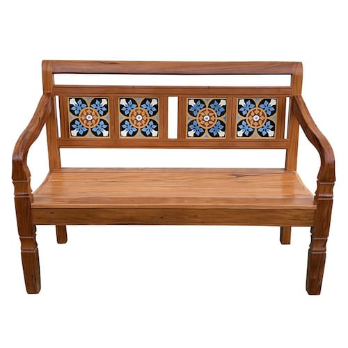 Banco Namoradeira 2 Lugares Ladrilho Azul Madeira Peroba Rosa Sudeste Rústico