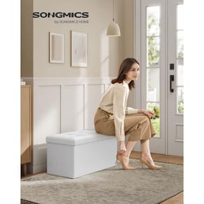 SONGMICS Banco otomano dobrável de 76 cm, baú de armazenamento, apoio para os pés, mesa de centro, assento acolchoado, couro sintético, comporta até 299 kg, branco ULSF106