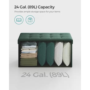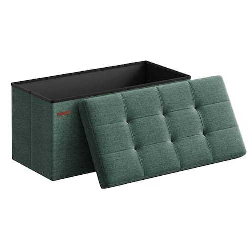 SONGMICS Mazie Collection – Banco otomano dobrável de 76 cm, descanso de pés otomano, banco de canto da cama, baú de armazenamento, carga 299 kg, para sala de estar, quarto, entrada, verde retrô