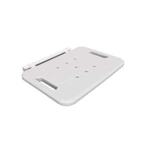Especificações Técnicas: Assento Plástico PE com espessura 30 mm. Estrutura metálica em Inox 304. Sistema de Travamento na vertical. Tamanho: 50 x 42 cm. Suporta 150 kg. Cor: Branca. Parafusos e Buchas enviados juntamente com o Produto.
