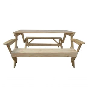 BANCO QUE VIRA MESA 1,5m PARA 06 PESSOAS COM TAMPO E ASSENTOS LISOS E BRAÇOS LATERAIS SEM VERNIZ
