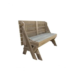 BANCO QUE VIRA MESA 1,5m PARA ÁREA EXTERNA TRATADA EM AUTOCLAVE COM TAMPO E ASSENTOS RIPADOS SEM VERNIZ