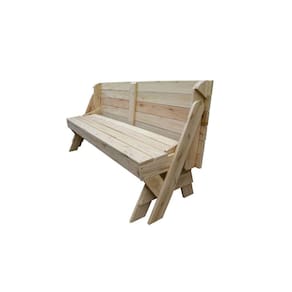 BANCO QUE VIRA MESA 1,8m EUCALIPTO PARA 06 PESSOAS COM TAMPO E ASSENTOS RIPADOS SEM VERNIZ