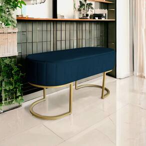 Banco Recamier Estofado Luana Base Gold Veludo Azul Marinho o Banco Luana é o produto perfeito para quem quer combinar Estilo, Conforto e Praticidade. Esta é uma ótima opção para ornar sua sala, quarto ou qualquer outro espaço, proporcionando máximo conforto e confiabilidade para sua família, amigos e convidados.