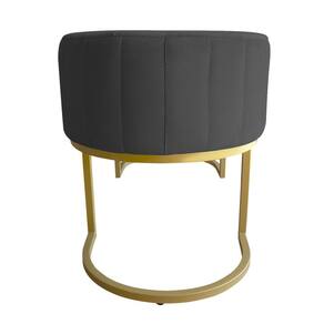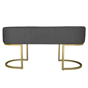 Banco Recamier Estofado Luana Base Gold Veludo Cinza - Montanaris Decor