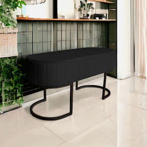 Banco Recamier Estofado Luana Base Preta Veludo Preto o Banco Luana é o produto perfeito para quem quer combinar Estilo, Conforto e Praticidade. Esta é uma ótima opção para ornar sua sala, quarto ou qualquer outro espaço, proporcionando máximo conforto e confiabilidade para sua família, amigos e convidados.