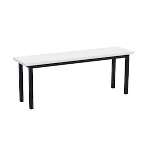 Características Técnicas: Produto: Banco Marca: Geeb Work Tampo Cor: Branco Base: Preto Capacidade: 4 lugares Indicação de Uso: Refeitórios, vestiários, áreas de convivência, empresas, escolas, indústrias e escritórios Tipo: Banco fixo de uso coletivo Design: Clean, minimalista e funcional Acabamento: Superfície lisa e fácil de limpar Construção: Estrutura projetada para alta resistência ao uso frequente Assento: Base reta projetada para estabilidade e conforto rápido