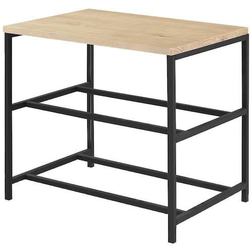 Banco Sapateira Industrial Em Aço Preto F84 Pinus Natural Dmobiliario - Branco