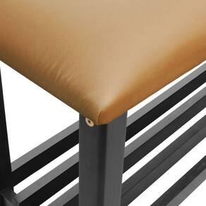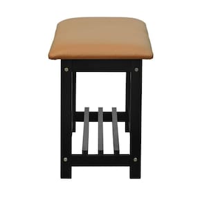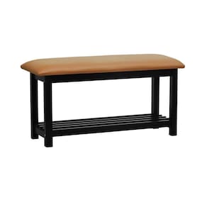 Banco Sapateira Viena Madeira Maciça - Preto Assento Estofado Corano Caramelo
