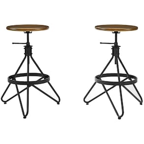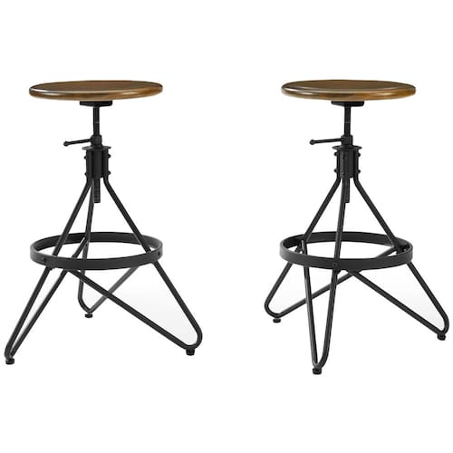 Conjunto de 2 bancos de bar giratórios Crosley Furniture Kalen Wood Seat com altura ajustável, marrom/preto fosco